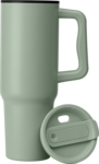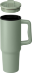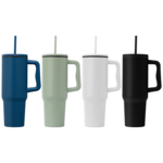 40 oz. Stainless Steel Tumbler with Plastic Liner and Straw– a versatile option for both hot and cold drinks. The outer body is crafted from 201 stainless steel, while the inner body, lid, and straw are made of PP. With a double walled vacuum insulation making it suitable for hot and cold drinks, and a capacity of 40oz. Measuring 10.51" x 2.95" with a narrow base that make it fit seamlessly into any car cup holder. This tumbler features an ergonomic handle for easy carrying, and a matte finish from spray painting.